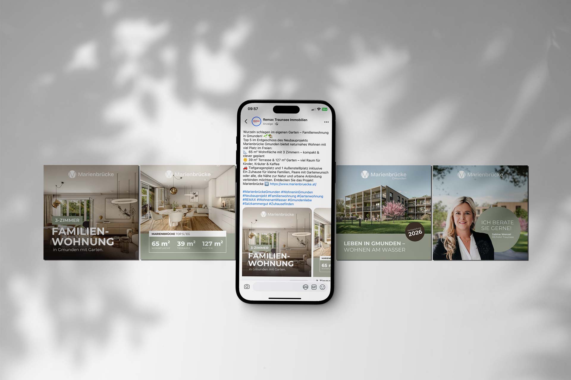 Für RE/MAX Traunsee entwickeln wir digitale Kampagnen zur Vermarktung hochwertiger Projekte. Eine standardisierte Kampagnensystematik ermöglicht eine einfache Skalierung und gleichzeitig die Berücksichtigung individueller Charakteristika der Projekte. So schaffen wir neue Touchpoints für den Verkauf von exklusiven Immobilien – abseits der Mainstream-Vermarktung.